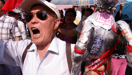 中新网5月11日电 台湾“立法院”今天(11日)上午召开院会,“中选会组织法”草案与总预算案再次呈现僵持局面,蓝绿分别动员数千名支持者在现场抗议和反制。