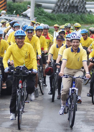 中新网5月20日电 中国国民党二00八参选人马英九今天上午骑抵台湾最北端的富贵角灯塔,完成从南到北达六百七十五公里的自行车环岛之行。