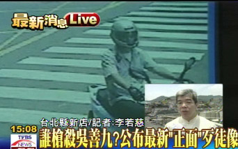 根据警方提供的查缉专刊显示,凶嫌在当日11时10分骑摩托车行经新店中正路154巷超商门口,准备打电话询问吴善九是否在服务处,当时他脱下安全帽,换上鸭舌帽,虽然戴着墨镜,但容貌清晰可辨;至于凶嫌穿着特点是浅色上衣、黑色帆布鞋。