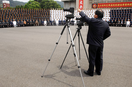 中新网7月7日电 陈水扁昨天任内最后一次主持三军五校联合毕业典礼,致辞时从头到尾不提“中华民国”,并把军中的口号“为‘中华民国’的国家生存发展而战”,刻意调整成了“为‘台湾’的国家生存发展而战”。