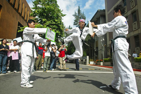 据“中央社”报道,马英九在支持者簇拥下再次步入法庭。早早就来到法庭外面的支持者,还演出了跆拳道行动剧,抗议“司法不公正、迫害马英九”。(徐肇昌)
