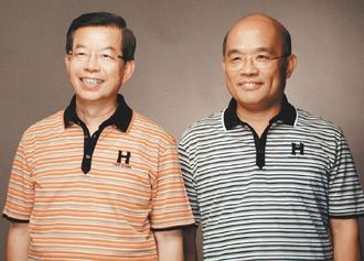 中新网9月6日电 据台湾《联合报》报道,民进党二00八参选人谢长廷及其副手苏贞昌,昨天进棚拍定装照,两人除了拍黑西装、白衬衫的版本外,也有平价POLO衫版。