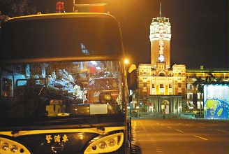 由施明德发起组织的“倒扁红衫军”于2006年11月29日撤离台北火车站前广场。这是施明德和他的红衫军在广场最后一夜守候。他们在露天举办的倒扁活动持续了81天。 中新社发 耿军 摄