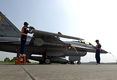 台军方安排嘉义联队执行F-16战机紧张起飞操演及地勤人员装挂AIM-120C导弹。嘉义联队副联队长徐建三表示,战机在空准备作战,“就要带最好的武器”,导弹运回返台开箱后就必须常用,放着不用等寿限期满就是浪费,因此目前F-16只要是执行对空任务,都会装挂AIM-120C。