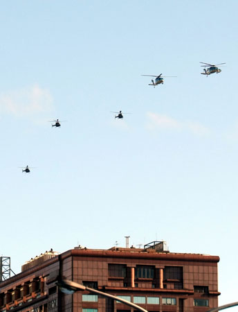 中新网9月28日电 准备参与今年“双十节”操演的台军地面分列式部队,今天凌晨开始陆续由新竹湖口营区进驻至台北县新店市的数个营区。空军分列式参演机群也于上午七时十五分在台当局“总统府”上空预演。