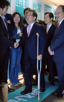 中新网10月12日电 因“忧愤成疾”闭关十三天的民进党二00八参选人谢长廷,在陈水扁昨天宣布兼任民进党主席之后,今天上午撑着拐杖召开记者会“复出”。