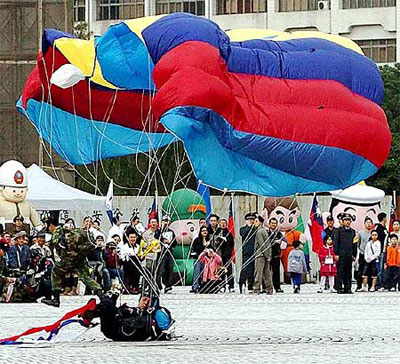 据台湾《联合晚报》报道,10名“神龙小组”队员由高空飘降至中正纪念堂广场,组长王劝闽中校着陆时在地上翻滚,起身后发现流鼻血,军方宣称是高空气压变化造成,不是受伤。