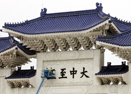 中新网12月7日电 台当局“教育部”拆除“大中至正”牌匾行动完成最后部署,今天(7日)上午10时40分左右展开,工程人员首先敲除“正”字,因字体镶崁太过坚固未能敲下,目前工作暂停。警方在现场除了布置路障,也在牌匾附近严密戒护。现场不见抗议人士,有绿营人士到场关切。