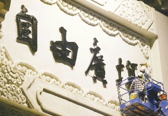 据《联合报》报道,负责牌匾施工的工程人员昨天先在原“大中至正”处清理、上漆,傍晚6点多完成外侧的“自由广场”四字的安装,另一侧的“自由广场”字样昨晚11时完工。