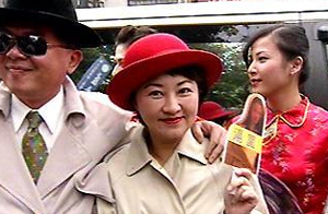 中新网12月19日电 今天是台湾第七届“立委”选举号次抽签日,国民党台中市参选人卢秀燕别出心裁,在丈夫的陪同下,以电影《色戒》男女主角装扮亮相。