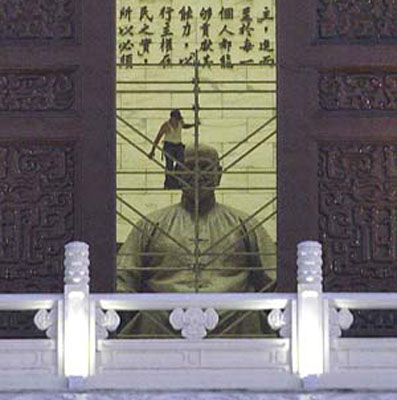 中新网12月27日电 据台湾《中国时报》报道,被改名为“台湾民主纪念馆”的台北中正纪念堂预定于明年元旦重新开馆,关闭已超过半年的二楼大厅将于当天重新开放。大厅内的蒋介石铜像虽然不拆除,但将被十米高的钢架及展示板围住。