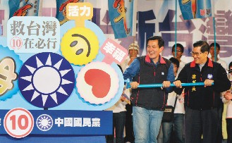 “大选”参选人马英九致词时诉求拼经济与政党轮替,呼吁选民踊跃投票让蓝营“立法院”席次过半。