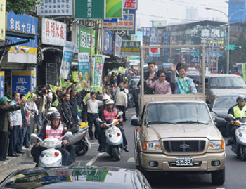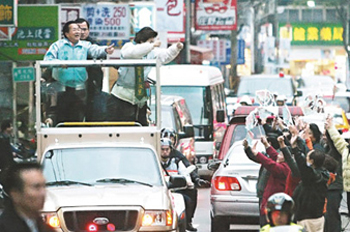 中新网1月8日电 吕秀莲昨天陪同民进党“立委”候选人在台北市沿街拉票,首度启用的全罩式防弹车第一次亮相,引起媒体关注。