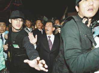 据台湾《联合报》报道,谢长廷多数时间仍维持不爱穿防弹衣的旧习,台上演讲或穿过群众“大退场”,都靠几名贴身随扈临机应变。