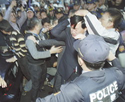中新网3月13日电 据台湾《中国时报》报道,国民党“立委”费鸿泰等四人,十二日偕同台当局“财政部长”何志钦等官员前往谢长廷竞选总部,引发谢总部工作人员和支持者包围,并指控“私闯”报警处理。警方获报赶抵现场,却和“立委”一起被大批党工和群众团团包围,演变成冲突事件。