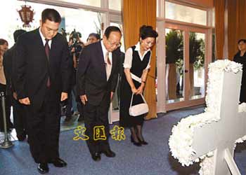 蒋孝严夫妇5日前往头寮谒灵。 台湾“中央社”图