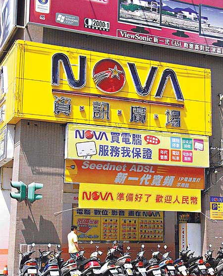 报载全台连锁的3C卖场NOVA 贴出欢迎人民币的广告,另一家咖啡连锁垫真锅咖啡也在价目表上列入人民币计价项目。
