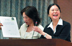 蔡煌琅质询时间已超过很久,又冷不防说了一句,“你有没有发现主席(李嘉进)让我继续质询你?”顿时引来哄堂大笑,蔡补一句说,“你知道在国民党的处境了哦!幸媛姐,回来吧,回来中心思想吧,那个位置很烫啦!很烫啦!”经过一整天的炮火轰炸,“两岸人民关系条例修正草案”顺利通过初审,赖幸媛也明显地松了口气。