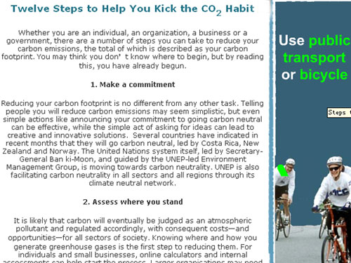 6月5日是联合国世界环境日。据《联合报》报道,联合国日前已经特地在官方网站鼓励世人以五种方式响应环保节能。特别的是,网站上提倡以大众交通工具和自行车取代开车,采用的广告主角是马英九。