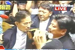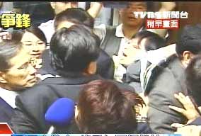 经刘盛良几度宣布休息进行协商,仍无法平息蓝绿“立委”的争议,此时赶来的民进党、国民党“立委”愈来愈多,在国民党“立委”周守训要求先进行会议询答、蒋孝严提出散会动议后,双方冲突一触即发。