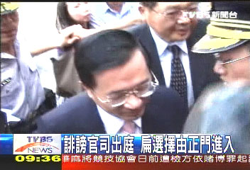 据台湾TVBS报道,陈水扁约在上午9点30分抵达台北地方法院,选择走正门进入,和规划的路线不一样,也因此引起一阵骚动。