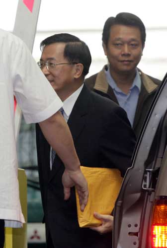 台湾检方特侦组侦办机要费案,三日再度以被告身分传唤陈水扁到案,说明机要费的支领状况。陈水扁上午九时三十分进入特侦组。面对媒体询问,陈水扁不愿回答任何问题。(“中央社”图)