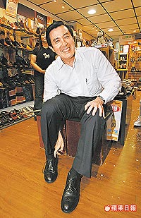 马英九买皮鞋,鼓励民众多消费。(图:台湾《苹果日报》)