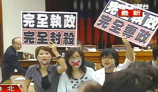 据台湾“中广新闻网”报道,民进党女“立委”管碧玲、林淑芬和陈亭妃由于不满在委员会提案被挡,22日上午在委员会上再度占据发言台抗议国民党处理方式。