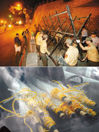 台北警方在圆山饭店附近部署隔离网。(图:台湾《联合报》)