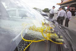 今日上午九时开始,台“警政署”成立指挥所,由“署长”王卓钧坐镇指挥。陈云林中午搭机抵台后,即由航警局担纲整个维安工作,机场会罕见净空,接着由桃园县警局的部门以接力方式,全程维护车队安全,直到抵达台北圆山饭店,交由台北市警局接棒。