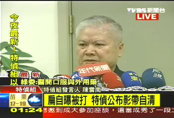 特侦组发言人陈云南:“我们的法警在警卫人员及律师的注视之下,铐上手铐,然后在警卫人员护卫之下,走下楼梯,到楼下的门口,在楼下门口的时候,陈前‘总统’把双手高举一段时间,我们的司法警察同仁把他的手按下来,请他上车,这过程中有我们本署的录像带,以及媒体记者朋友的录像带可以证明。”