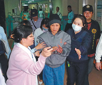 绝食的云林县长苏治芬12日晚再度因身体不适,送往虎尾若瑟医院,坚持不躺推床,自己走进病房。图片来源:台湾《联合报》