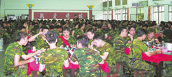 图为台军官兵在餐厅用餐。(来源:台湾《中国时报》)