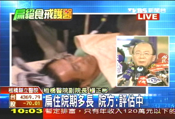 板桥医院副院长杨正彬说:“(陈水扁)身体虽然有改善,但还是虚弱,而且陈水扁依然不想进食,至于会住院多久,我们会有专业的评估,也会和台北看守所有密切联系。”