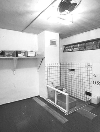 另外,看守所内的厕所都没有马桶盖,李敖曾在自己的回忆录中描述,“冬天时候,一坐上去,就像在屁股上套个大冰圈。大便完了,起身时要小心,因为皮肤已与马桶有粘接现象,要慢慢站起,才不会痛。大便以后,发现屁股上多了一个圈”。虽然现在陈水扁屁股上还不至于多个圈,但看守所每天只供应两桶水,洗澡、洗餐具后,用来冲马桶的只怕也所剩无几。