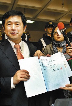 陈水扁律师郑文龙(左)。图片来源:台湾《联合晚报》