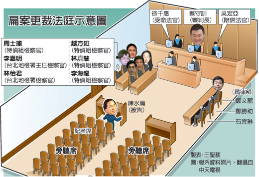 据了解,特侦组对于审判长换由蔡守训后,重燃羁押陈水扁的信心,因此相当慎重,参与羁押庭的台北地检署二位检察官,上午也前往特侦组开会,针对下午的攻防内容,进行阵前沙盘推演,希望能达成押扁的任务。