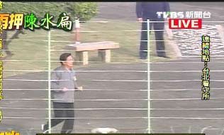 中新网1月15日电 据台湾TVBS报道,今天是陈水扁遭到收押的第17天,昨天才传出,阿扁抱怨进入看守所多日仅获得4次的放风机会,不过,就在今天下午电子媒体首次捕捉到陈水扁的放风画面。
