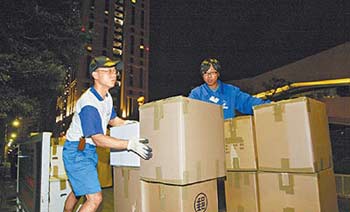 记者昨晚9时许根据爆料前往宝徕,发现一辆标明“康洁搬家公司”的17吨大货车停靠距宝徕100米处,旁边还有一辆1.75吨小货车,约有6名搬家工人将一箱箱货品搬上车,分析应是陈致中搬家。