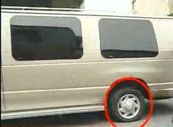这辆爆胎的厢型座车,采全车防弹设计,前后挡风玻璃有强化防弹功能,车身底盘也配备防爆钢板,内部还衬有防爆地毯。座车后门预留架设枪枝的枪口,但外观上难以察觉,须在紧急时刻由内部撞穿铺设后门的防弹板后,即刻架设枪枝进行护卫任务。