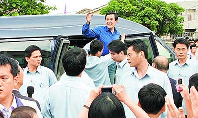 中新网3月23日电 据台湾《苹果日报》报道,马英九22日下午前往嘉义视察途中,座车左后轮突然爆胎,紧跟在后方的厢型车紧急煞车与座车轻微追撞,由于事发突然,随行安全人员吓了一跳,马英九了解状况后,立即换车继续行程。马英九安全未受影响,事后也表示自己“处变不惊”。