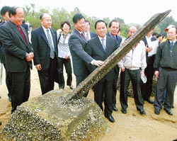 中新网3月30日电 金门与厦门预定8月共同举办“横渡金厦海上长泳”活动,在台访问的厦门市长刘赐贵29日由金门县长李炷烽陪同至小金门双口海岸实地勘查。针对县府基于确保选手安全,将协调军方拆除1000米反登陆“轨条砦”,他强调这意味着将两岸过去敌对、对峙的军事设施也清除掉,是一件“好事!”