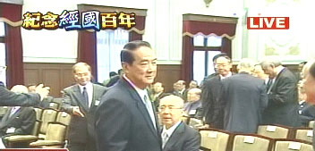 为了纪念蒋经国百年冥诞,李登辉难得重回官邸,在中国国民党主席吴伯雄的陪同下进入会场。最特别的是,这也是李登辉与宋楚瑜两人近10年来的首度同台,两人相隔三个座位一个走道,没有任何互动。
