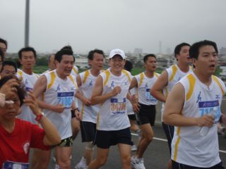 穿着短裤、排汗衣的马英九带着自己的慢跑鞋来到宜兰参加路跑,再仔细看除了随扈、官员团团包围之外,光是跑在马英九周围的就是很多兰阳指挥部的官兵。