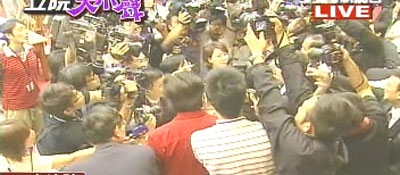 中新网5月6日电 据台湾《联合报》报道,为了阻挡“议事”进行,民进党扬言不惜流血冲突,今天(6日)民进党娘子军再度出动,“立委”林淑芬手拿麦克风高喊,双方爆发冲突。