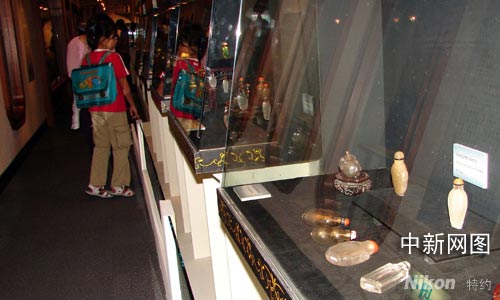 仅仅几十平方的长廊,却从容地摆放着二百多件的展品,在这里,能看到翡翠、玉石、瓷器、水晶、竹、牙,也能欣赏到书画、雕刻、釉彩、铜胎等等,位于台北市南海路的历史博物馆二楼,八月二十九日下午开始的“台北鼻烟壶珍品展”,在展示鼻烟壶之精美的同时, 也让参观者领略了中华传统艺术的博大和丰富内涵。