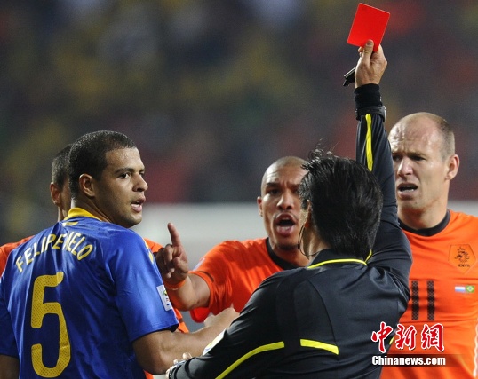 中新网7月3日电 巴西队1比2被荷兰队淘汰,球队的中场大将梅洛成为头号罪人。不过,赛后这名在比赛中既摆乌龙又吃红牌的后腰表示罗本太爱表演,自己是冤枉的,如果自己玩真的,罗本当场就给废了。