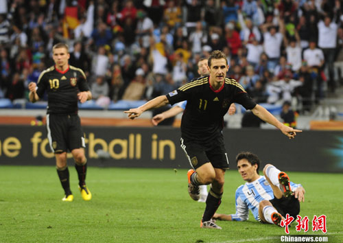 法新社报道的标题为,“德国击溃阿根廷杀入世界杯半决赛”。报道称,克洛泽用两个进球庆祝他的第100场国家队进球,他帮助德国4比0狂胜阿根廷。