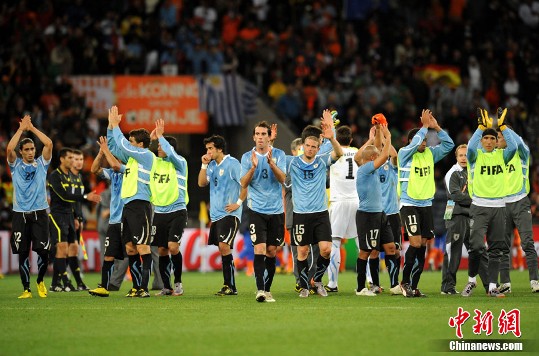 “周六(与加纳队)的比赛队我们很重要,”塔巴雷斯说,“当我们回首的时候,我们发现,我们进入了四强半决赛,另外三队都来自欧洲。”随着乌拉圭的出局,世界杯也成了欧洲球队的内战,荷兰将于明天和德国与西班牙半决赛的胜者争夺冠军。