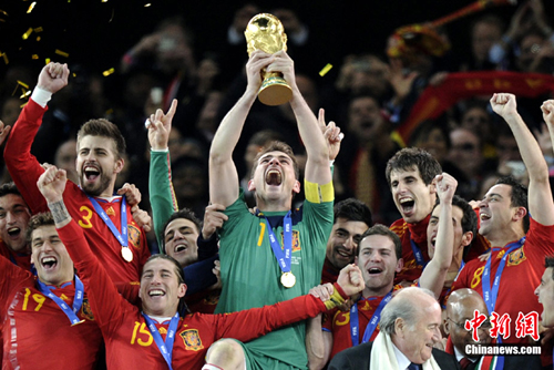 世界杯在南非这片神奇的土地上迎来了新的王者!一路走到最后的西班牙队最终靠这粒黄金般的进球,1比0绝杀“无冕之王”荷兰队,历史上首次夺得世界杯冠军。而荷兰队则继1974年和1978之后,第三次屈居亚军。